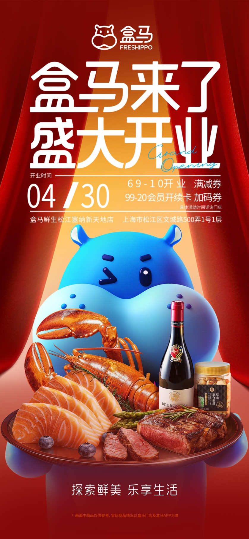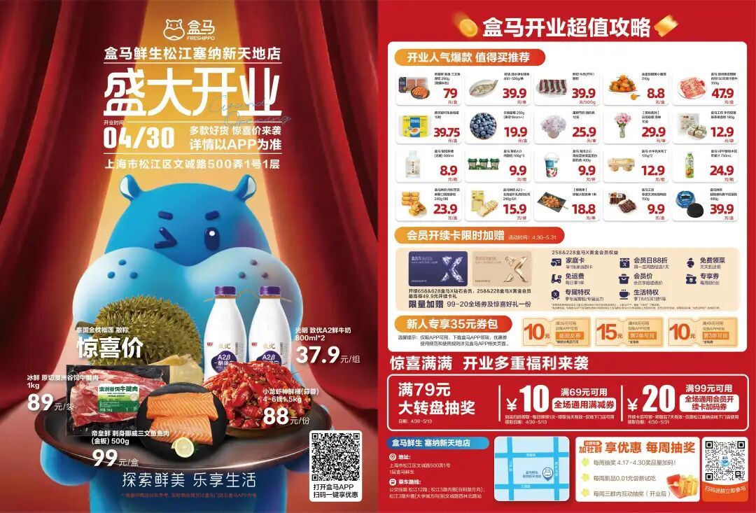 开业地址:文诚路500弄1号1层盒马鲜生
