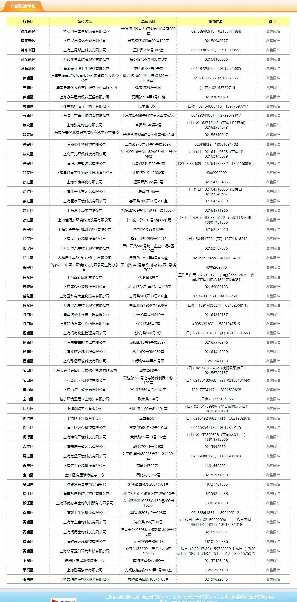 登录“上海住宅物业网”,找到“白蚁防治”专栏,可查询白蚁防治知识、正规白蚁防治企业联系电话及收费标准等信息。