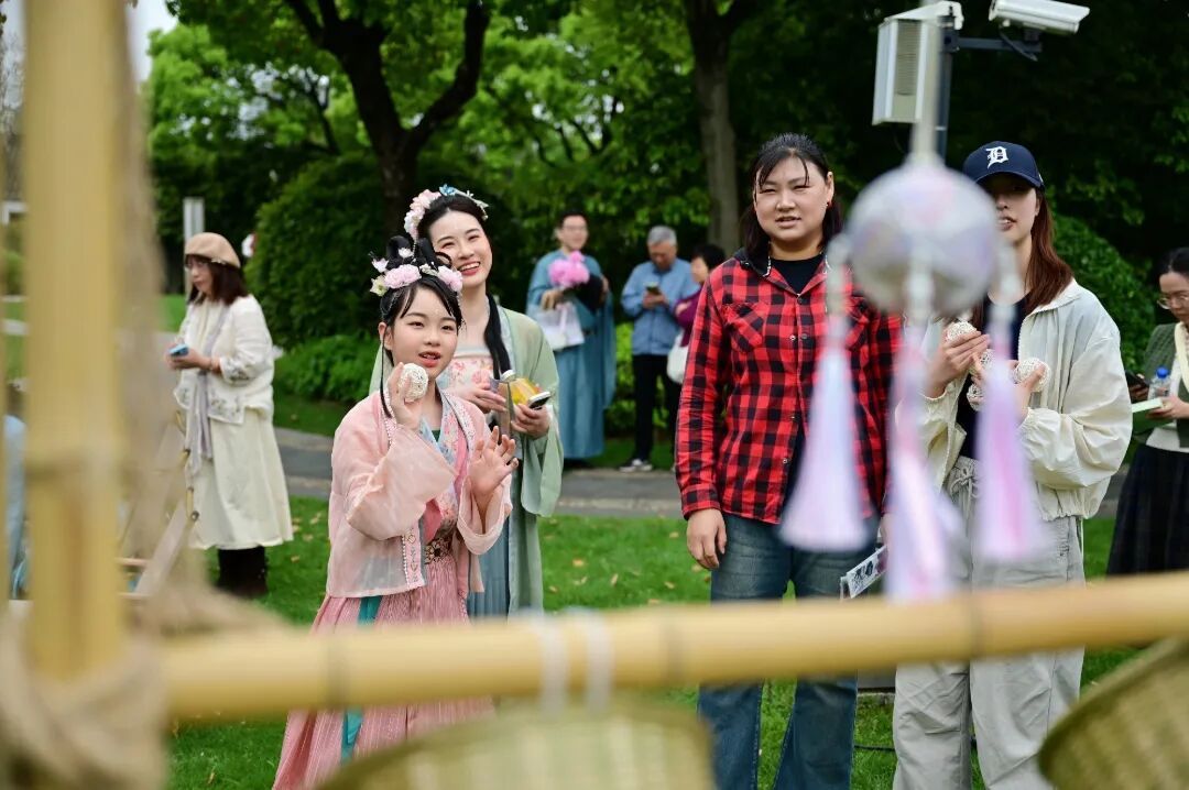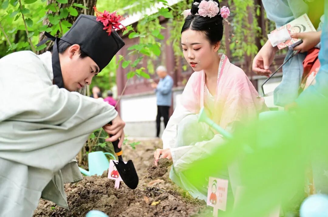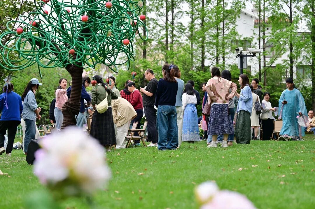 游园打卡互动区也是热闹非凡。三大主题打卡点各具特色,参与者沉浸式体验传统文化。在爱情之种、生育之种、生命之种活动中,大家在古韵雅趣中感悟生命与家庭的美好。