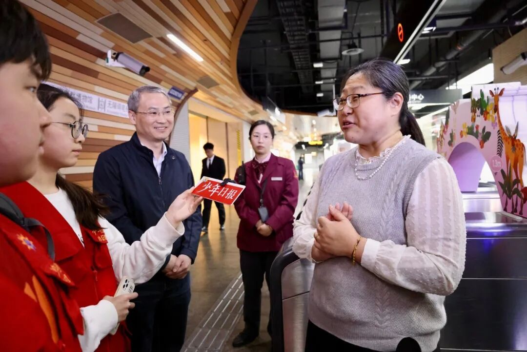 4月11日,在13号线自然博物馆站的儿童友好通道前,《少年日报》小记者们见到了市人大代表陈燕、黄浦区人大代表汪友斌,还有上海地铁13号线自然博物馆站副站长徐卿,一场关于“儿童友好”的对话就此展开。