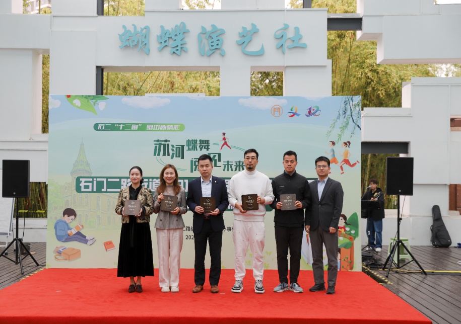 街道文体融合品牌“十二跑”发令起跑。由辖区老师、社区儿童、楼宇白领组队的跑团,在蝴蝶湾沿线打卡点参与诗句问答、书签收集等互动环节,将阅读与运动巧妙融合。