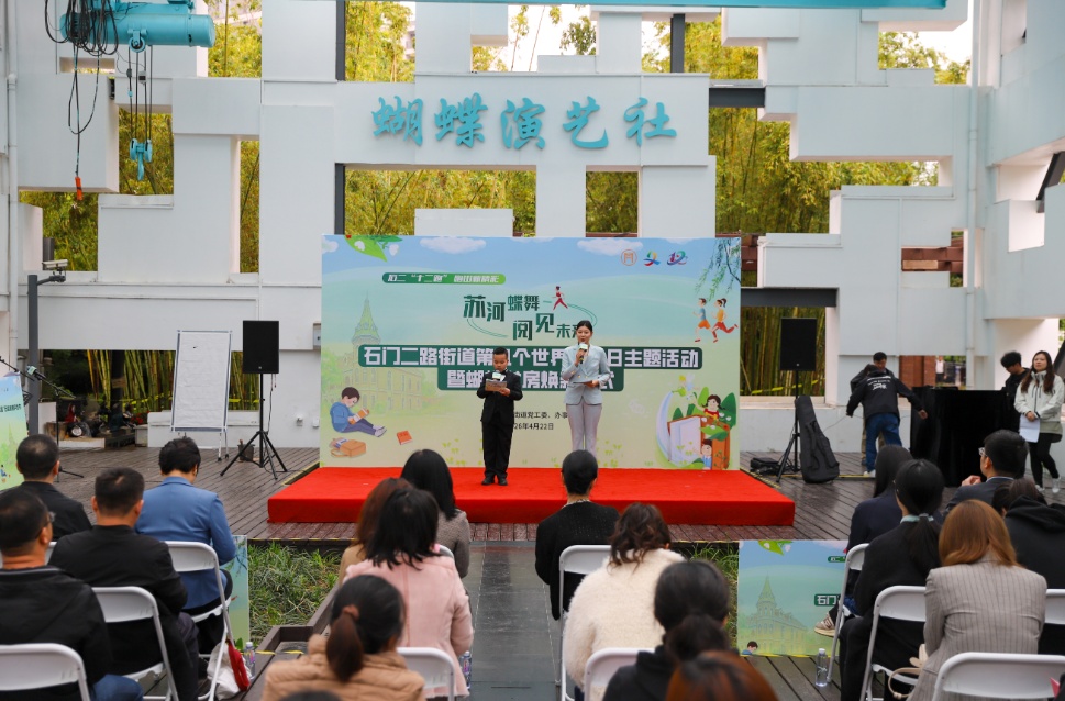 4月22日,在第31个世界读书日来临之际,石门二路街道“苏河蝶舞 阅见未来”主题活动暨蝴蝶书房焕新仪式在蝴蝶湾绿地举行。石门二路街道、区文化旅游局、区妇联、宋庆龄基金会、上海少年儿童图书馆、区图书馆等相关部门负责人,共建单位代表、志愿者团队及社区居民等参加活动。