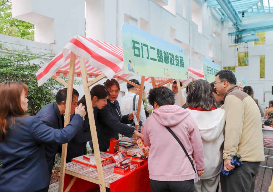 活动当天,蝴蝶湾绿地同步开设了书香文化市集。蝴蝶湾滨河党群服务阵地主理人、新华书店海防店、石门二路邮政支局、上海新东方、慈善超市、云卓文化、安咖啡等多家单位及商户齐聚现场,带来图书展销、文化体验、玉石鉴赏、创新生活用品、咖啡品鉴等丰富多彩的互动内容。市集现场人头攒动,市民们充分感受书香与生活的交融。