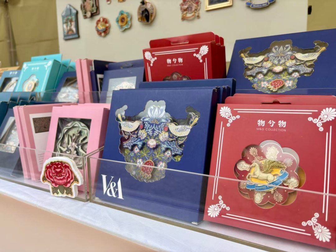 专注于将全球博物馆IP融入文创产品的物兮物,带来了非常精美的冰箱贴、玩偶、水杯;