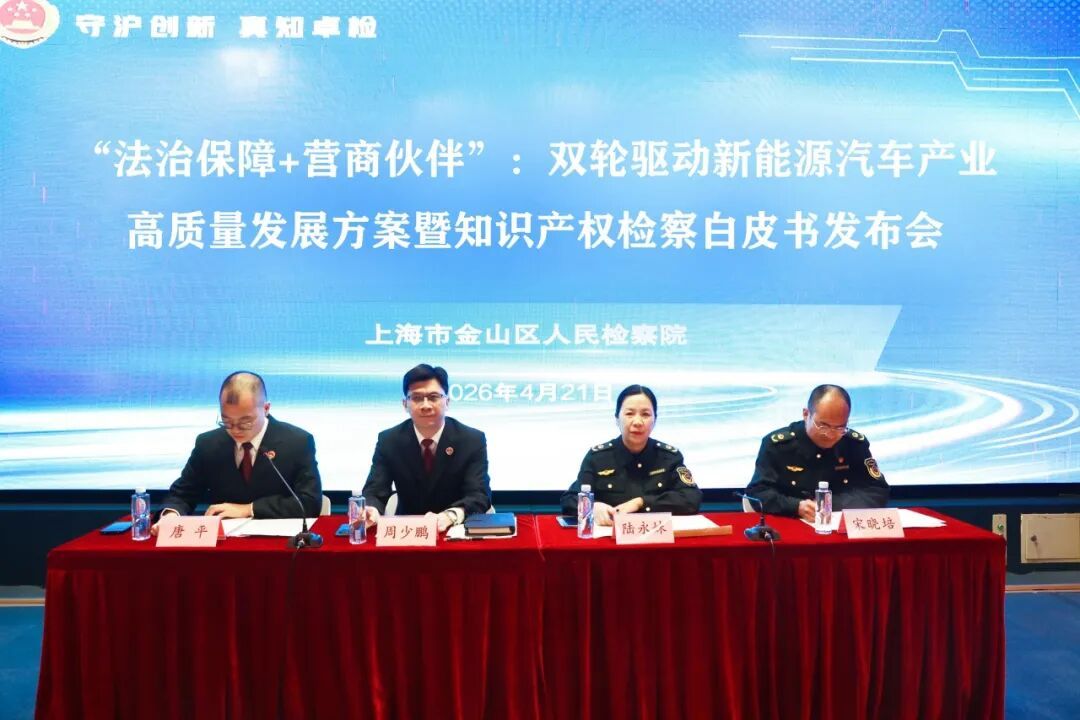 为加强知识产权法治保障,日前,金山区检察院联合金山区市场监管局举办“法治保障+营商伙伴”:双轮驱动新能源汽车产业高质量发展方案暨知识产权检察白皮书发布会。部分区人大代表,企业代表以及新闻媒体记者应邀参加。