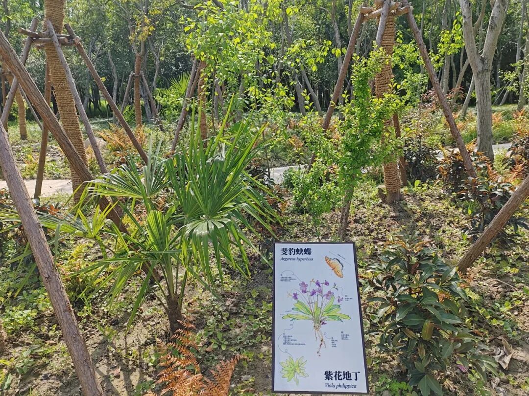 在林下半阴野花区,适应半阴环境的乡土草本植物不仅构成了美丽的林下花境,还吸引蜂类、蝶类等传粉昆虫前来觅食。“这里保留了原有的部分麦冬,同时种植了一些比较耐阴的灌木、蕨类和二年生的石蒜属植物,修复林下野花草本植被。”项目设计师介绍。
