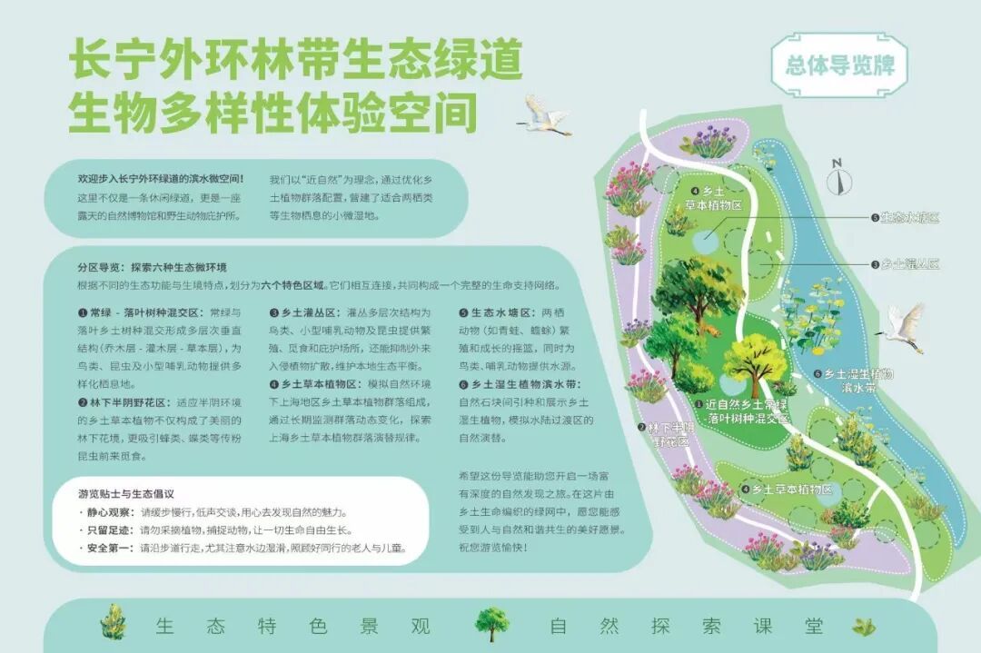 2025年底至今,长宁区生态环境局对长宁外环林带进行了“生境+”改造和培育,通过种植本土植物、增添生物多样性保护设施等措施进行生境适应性改造,提升区域生物多样性保护功能。