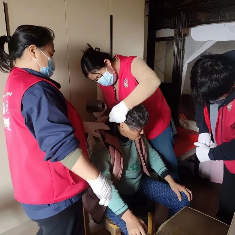 前期准备阶段:精准锁定低保低收入、失智失能老人,合理划分服务区域并分工对接,提前预约时间、确定工单。组建护理、医护及志愿者服务小组,备好物资按计划上门服务。