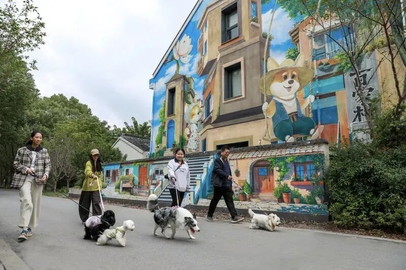 而翟玉亭格外青睐的张堰镇百家村,则是金山乡村新业态、新场景的最佳代表。作为全国文明村、中国美丽休闲乡村,百家村早已拥有扎实的生态基底与村容环境,万亩生态林环绕、玉兰湖碧波荡漾,是天生的休闲好去处。但百家村并没有止步于“干净整洁”,而是依托自身生态优势,找准“宠物友好”这一切入口,持续深耕、不断升级,走出一条特色鲜明的乡村文旅新路。