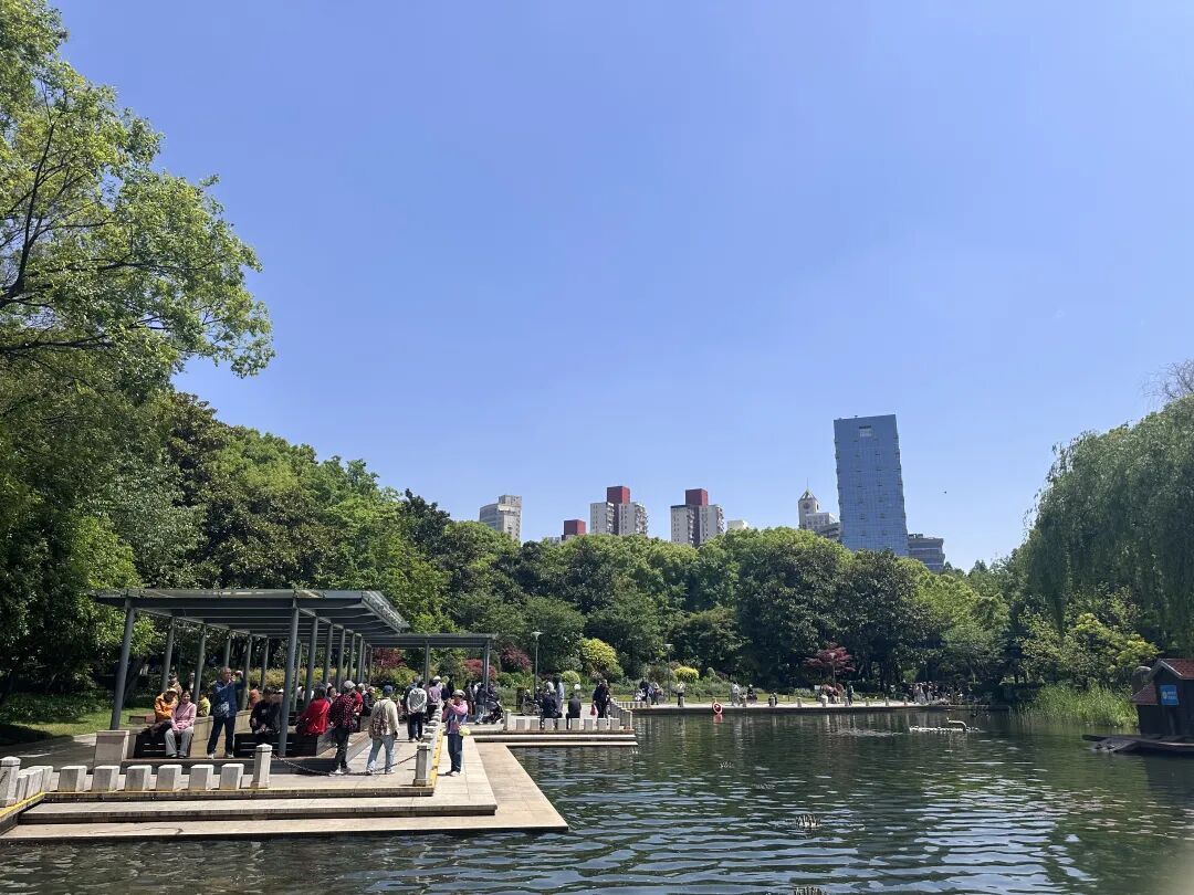 上午十点,记者在徐家汇公园看到,暖阳浸润下的公园满是春日诗意。葱郁林荫覆盖悠长步道,日光穿过枝叶洒下满地碎金;澄澈湖水倒映蓝天白云,岸边游人悠闲漫步、静坐赏景,市民自在踏青散心,在满目翠绿里享受春日闲暇,城市烟火与烂漫春光温柔交融。