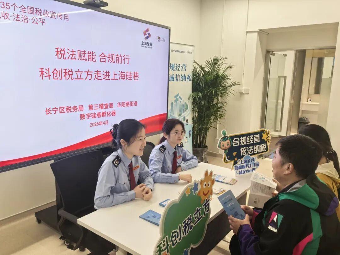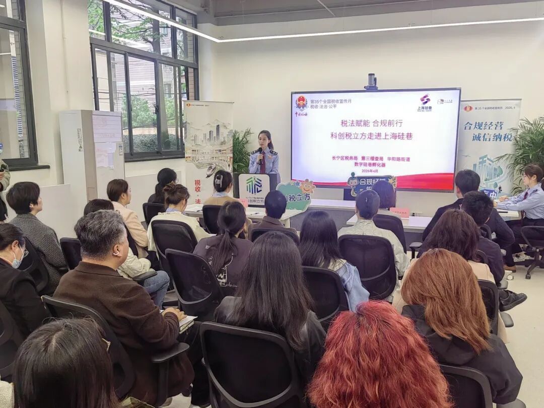 这场活动由长宁税务局联合第三稽查局、华阳路街道办事处共同举办,主题是“科创税立方”走进“上海硅巷”。来的可不只是税务人员,还有长宁区税收工作特约监督员、科创企业代表和营商环境体验官,大家一起聊政策、问难题、找办法。