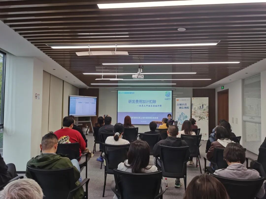 浦东新区税务局走进世博地区,为区域企业提供专题税收政策宣讲,帮助企业进一步明晰相关政策要点和实操流程,规范涉税管理,实现合规经营,为企业科技创新和人才培养注入“税动力”。