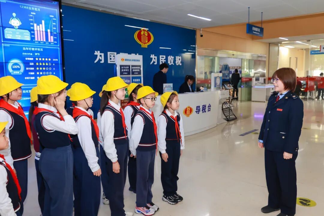 嘉定区税务局邀请清水路小学的师生代表走进智慧办税服务厅,开展沉浸式税收普法宣传实践活动。税务干部化身科普讲解员,用生动易懂的语言,为孩子们普及税收来源、用途等基础知识,介绍办税服务厅日常工作流程及智能办税设备应用,引导青少年树立依法纳税理念,让税法种子在童心深处生根发芽。