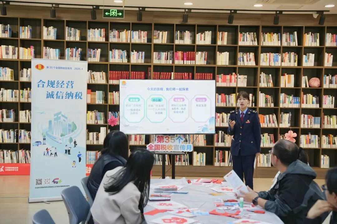 4月23日世界读书日当天,宝山区税务局联合宝山区图书馆开展税法知识主题宣讲活动。税务干部围绕税收基础概念、个税年度汇算、图书及非遗行业税收政策等方面进行通俗讲解,将税法知识融入书香氛围,引导市民知法懂法、诚信纳税,推动“税收·法治·公平”理念在公共文化空间中落地生根。
