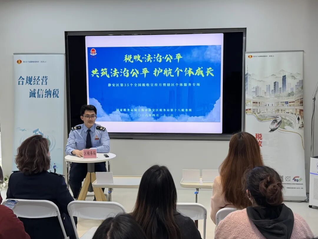 静安区税务局联合个体劳动者协会、临汾路街道,举办“共筑法治公平,护航个体成长”个体工商户专场税收普法宣传会。活动面向辖区个体工商户,讲解涉税政策与合规经营要点,现场答疑,切实提升经营者法治意识,助力个体经济健康发展。
