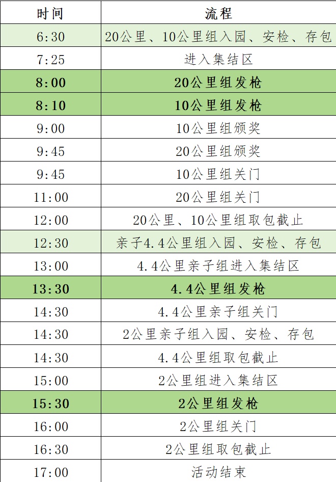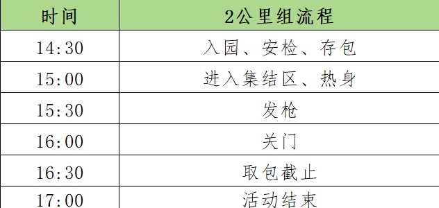 注意:接驳车中间不停靠。同时,从公园入口步行至主会场尚需一定时间,请预留充足时间余量,以免错过起跑仪式。