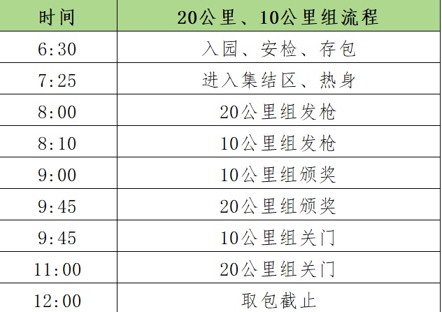 比赛日早晨6:30日开放检录,参赛选手凭号码布入场。