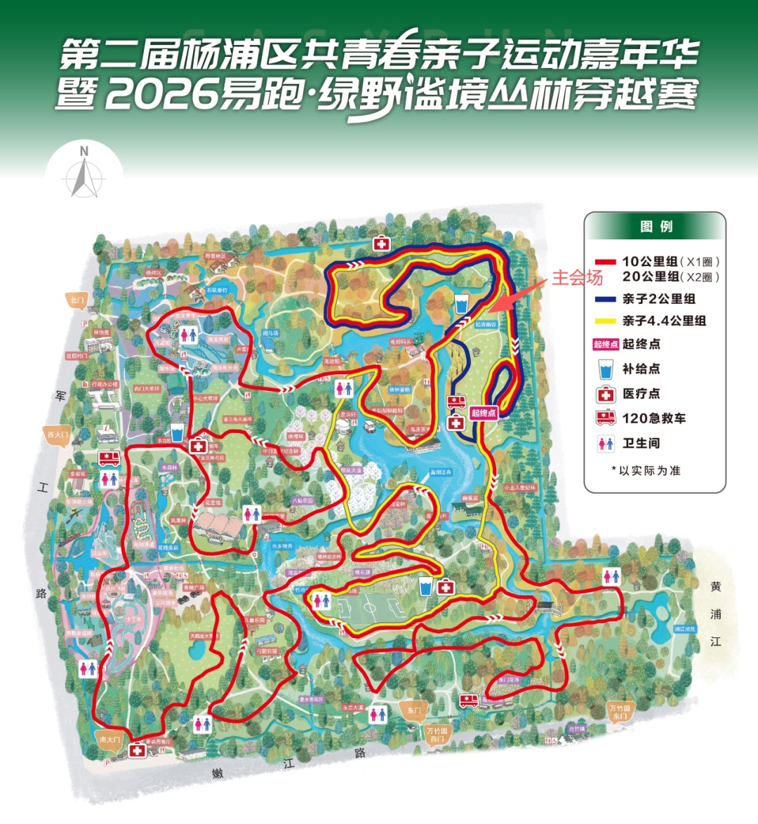 比赛主会场(起终点)位于上海共青森林公园松涛幽谷大草坪,请参赛选手根据所在组别合理安排到场时间,提前完成安检与存包。