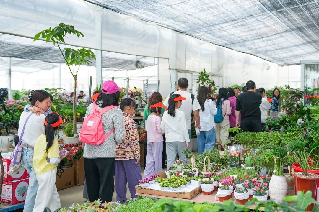 研学首站,亲子家庭走进云间卉谷(上海松江长三角花卉科创产业园),近距离观察各类特色花卉苗木,了解长三角花卉科创产业的发展模式,学习花卉培育、生态种植的相关知识,感受科技赋能生态的魅力。
