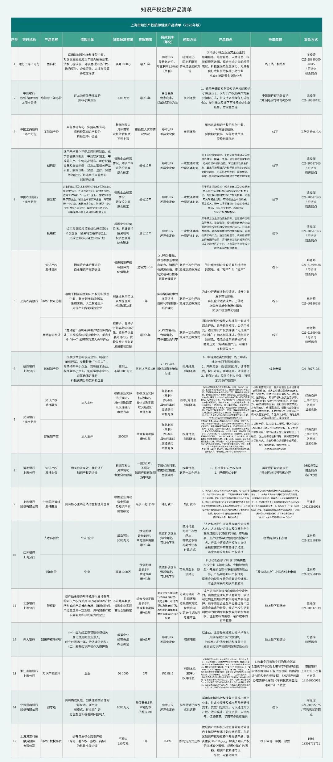清单共收录本市金融机构发布的21个质押融资产品、16个知识产权保险产品以及1个知识产权服务信托产品。清单详细列明了各产品的借款主体、贷款最高额度、贷款期限、贷款利率、还款方式、产品特色、申请流程及联系方式等关键信息,方便企业“按图索骥”,精准对接。