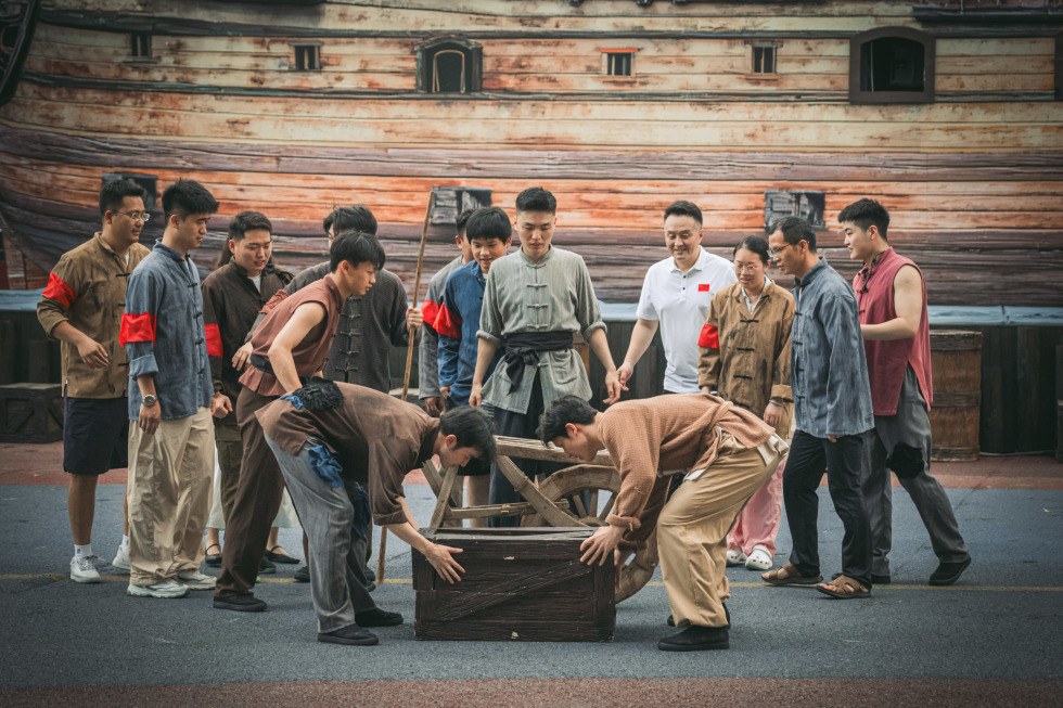 游客王先生一家则跟随另一条剧情线,踏入了十六铺码头。在汗水与号子声里,他们体验了劳工、船帮等互动角色。“号子一喊起来,特别过瘾。”王先生说。