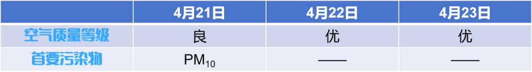 4月17日至4月23日徐汇区空气质量等级及主要污染物: