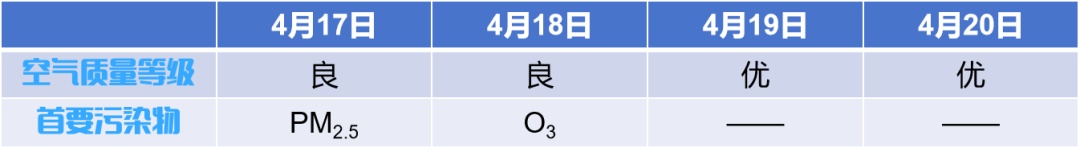 2026年4月17日—4月23日,徐汇区大气环境质量报告如下所示: