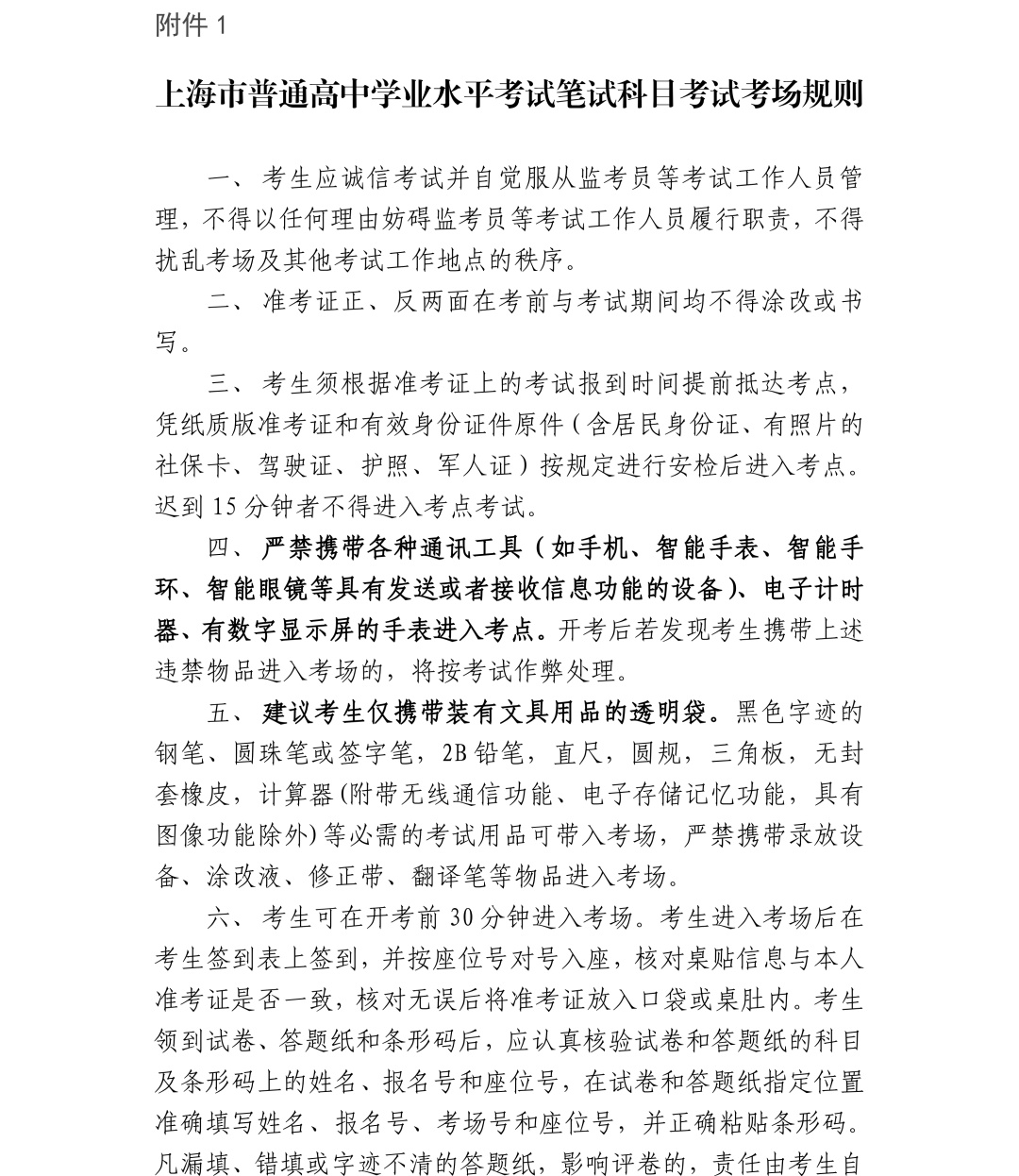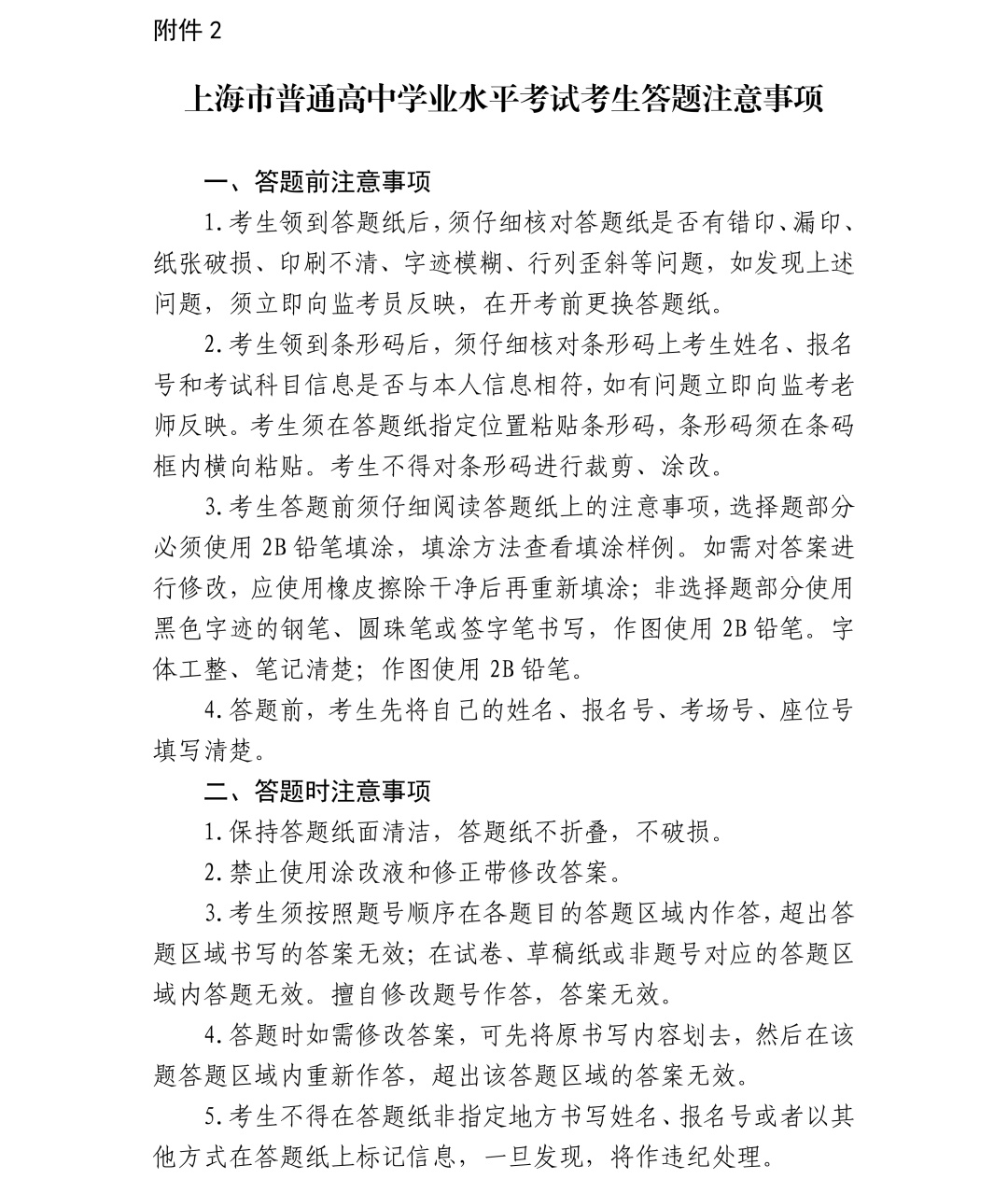 6.请考生仔细阅读《上海市普通高中学业水平考试笔试科目考试考场规则》(附件1-附文末)和《上海市普通高中学业水平考试考生答题注意事项》(附件2-附文末),诚信考试。警惕网上虚假信息,保护自身利益。如有违规、违法行为将参照《国家教育考试违规处理办法》(教育部令第33号)(摘要)或《中华人民共和国刑法修正案(九)》(摘要)严肃处理。