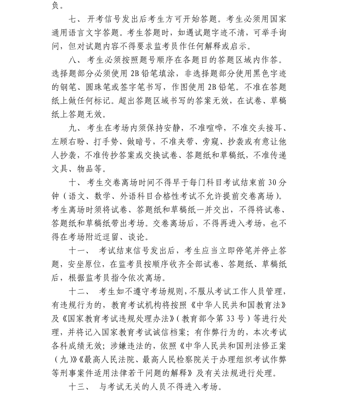 4.本次考试实行考点和考场“二次安检”。进入考点时,考生须服从安排、有序入场,接受考点工作人员的安全检查。