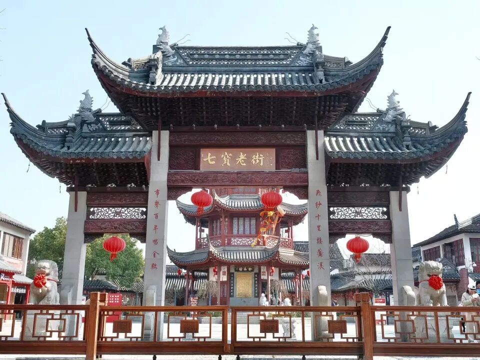 如果你是在虹桥机场或者虹桥火车站,出站后按“市域铁”标识步行3至5分钟即可到达机场联络线站台。登车后,仅需约5分钟,列车便抵达中春路站。从中春路登上9号线,乘坐一站,在七宝站下车。出站步行几分钟,千年古镇的飞檐翘角与商圈的现代玻璃幕墙已在眼前交织。