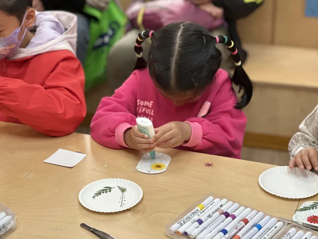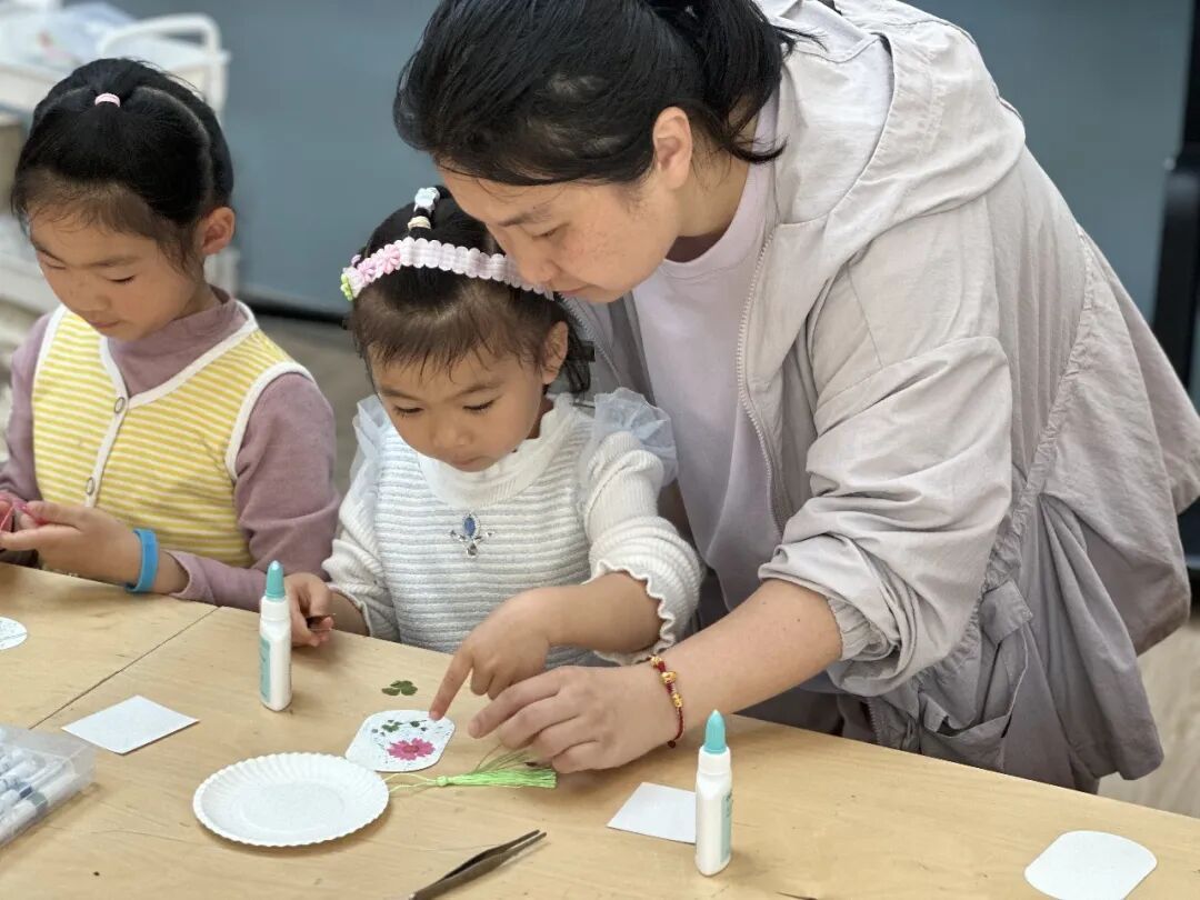 在互动体验环节,大家利用干花瓣、干草等天然材料,亲手制作创意花卉书签,把自然之美定格留存,也在实践中悄悄种下了绿色环保的种子。