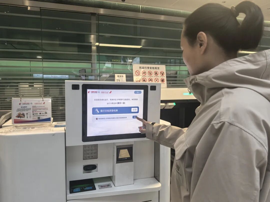 在上海虹桥T2航站楼,东航联合上海机场全面推行“一证通关”服务,旅客仅凭身份证即可完成值机、安检、登机全流程,“无纸化”通行更低碳、更便捷。在登机口区域,旅客可通过GWS系统完成退改签等一站式服务,减少往返安检内外的周折与排队等待时间。
