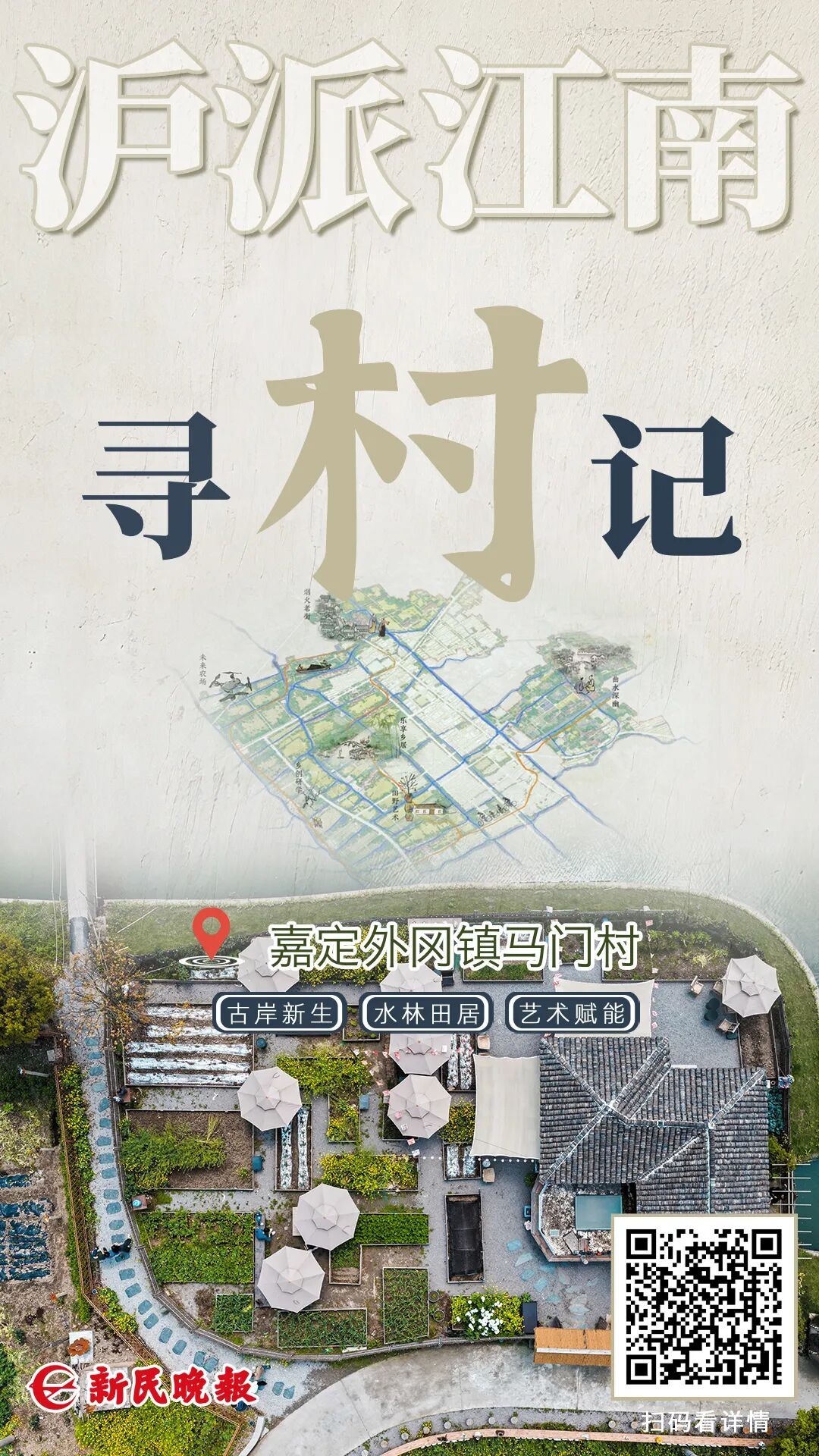 它地处上海古海岸线冈身地带,这道形成于约6000年前的贝壳沙堤,是上海先民最早定居之地,也孕育了嘉定地区最早的人类文明,可以说是“嘉定之根”。练祁河、吴塘、马门河三水环抱,阡陌水网交织,让马门村所在的葛隆单元成为沪派江南“纤网”意象的典型代表——塘浦纵横、泾浜蜿蜒,民居依水延展,织就江南水乡的原生肌理。