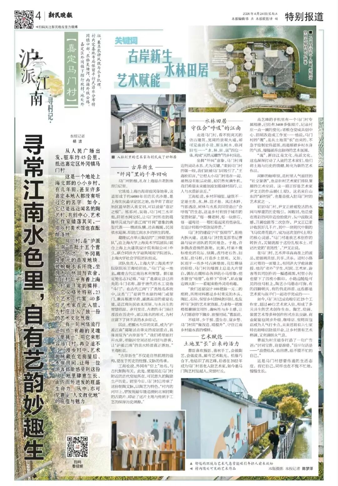 有一句网络流行语叫作“有趣的灵魂万里挑一”,用它来形容马门村,再合适不过。漫步村中,艺术趣味藏在宅前屋后、水岸田间,让每一位游客都能感受到这份从土地里肆意生长、由内而外迸发的旺盛活力。从中,亦可见嘉定“人文教化地”的底蕴与魅力。