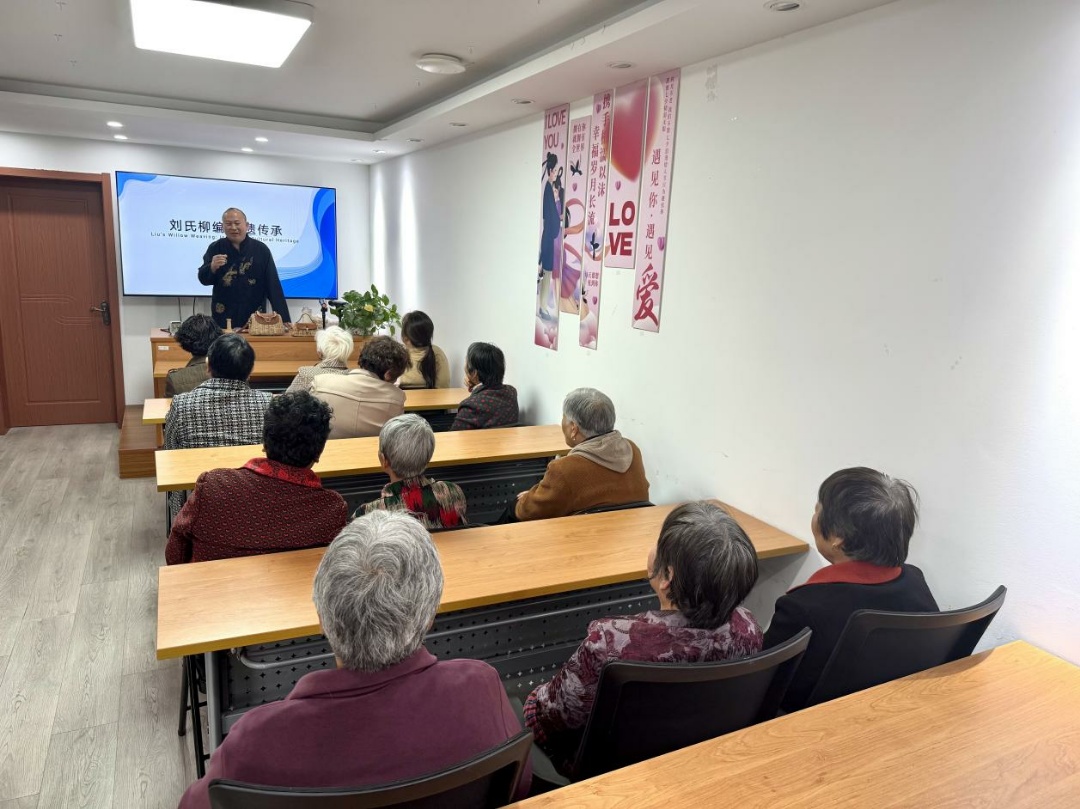活动开始,中国非遗柳编代表性传承人刘凤臣向居民们讲述了柳编的历史渊源——柳编起源于旧石器时代早期,后慢慢成为生活必备器具,其作为中国民间传统手工艺品,于20世纪后期出口世界各地,并在2008年列入国家级非物质文化遗产名录。
