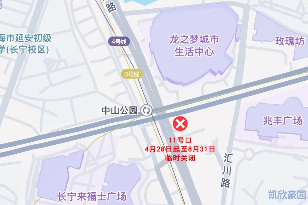 考虑到地铁11号口位于中山公园商圈,临近汇都大楼、联通大厦、新时空国际商务广场等商务楼宇及各居民住宅小区,早晚高峰客流量相对较大。为最大程度减轻该出入口临时关闭对乘客出行带来的影响,车站提前做好各项准备工作,包括张贴友情提示和导向标识,广播滚动播放相关提示内容,工作日早晚高峰安排党员志愿者在站内和地面进行客流引导和疏散,以有效应对突发情况,避免客流积压,确保乘客安全有序出行。
