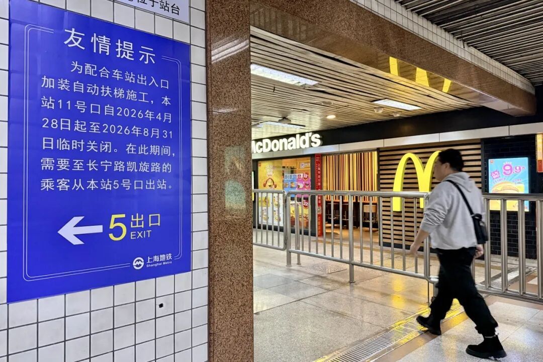 据了解,本次11号口临时关闭,是为配合车站自动扶梯加装施工。该出入口原本设置有一台上行自动扶梯,施工后将增至“一上一下”两台自动扶梯,进一步提升通行效率,方便乘客出行。