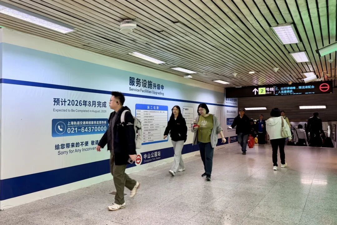 来到地铁2号线中山公园站,记者在站厅和各出入口连接处、出站闸机附近及站台均看到醒目的友情提示,上面写道“本站11号口自2026年4月28日起至8月31日临时关闭”。现场不少乘客驻足观看提示,及时规划调整出行线路。