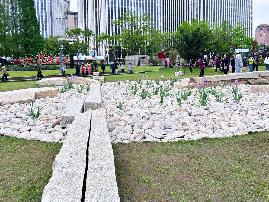 据介绍,“海上之路”装置荣获2026上海国际花卉节艺术类作品一等奖,由黄浦主办方“三顾茅庐”邀请中国庭院设计师康恒设计。“城市发展并非推倒重来的简单覆盖,而是如地质层一般层层叠加、渗透的过程。那些看似消失的窄巷与天井,早已化作精神肌理,留存于这片土地的空间基因中。”康恒表示。他希望借“海上之路”传递:时间不只在流逝,也会化作痕迹留驻于空间。每一次驻足凝望,都是对城市记忆的重新感知与唤醒。