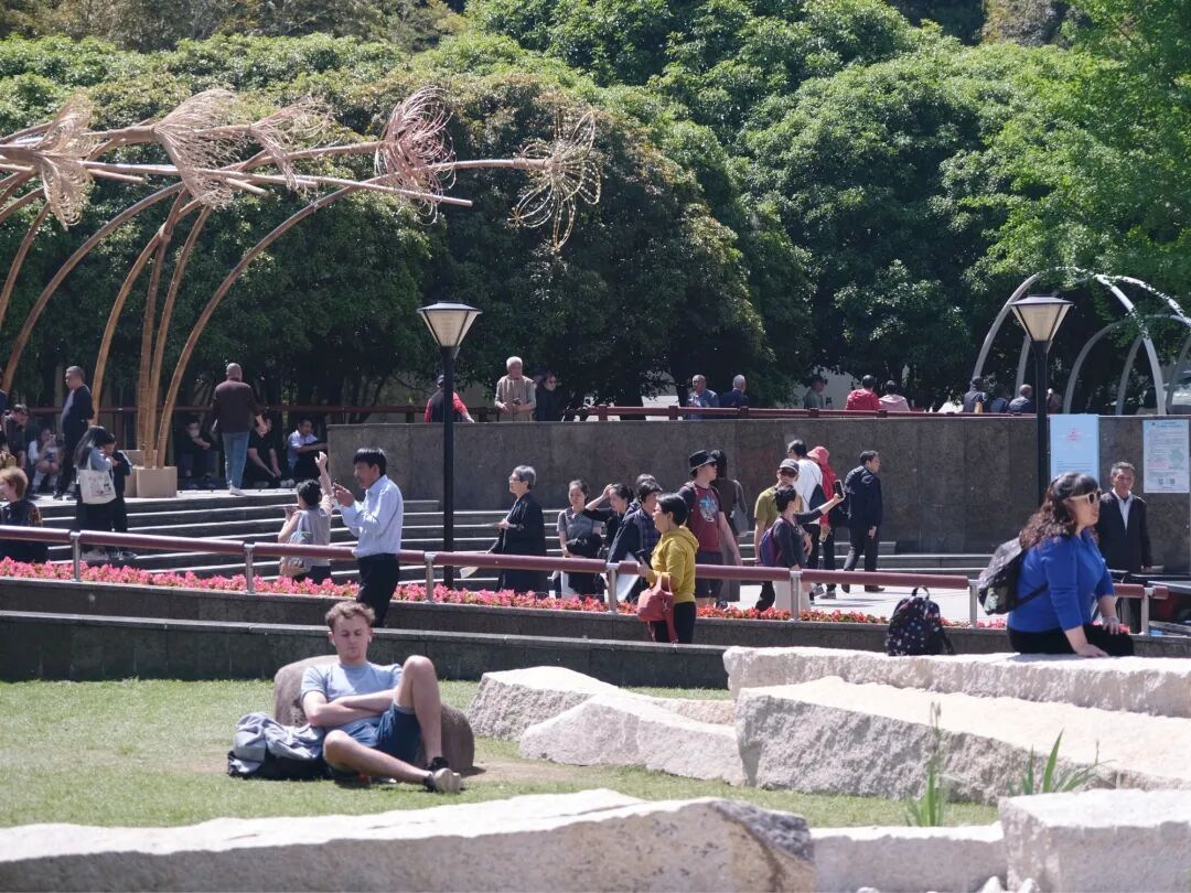 与石材的坚硬恒久形成对照的,是中心的花卉。春光下,这些花朵开得明亮坦然,甚至有些“任性”。它们提醒着每位游人:无论历史多么厚重,未来多么遥远,最值得珍视的,仍是此刻盛放的生命力。