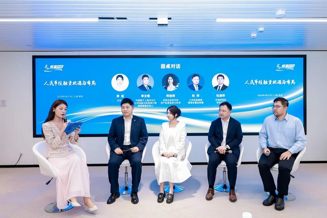 4月27日,“苏河财富对话”2026年第二场活动在静安国际会客厅举行。本场活动聚焦“人民币投融资机遇与布局”这一主题,深度解读人民币投融资机遇与布局,全面探讨全球资本与中国市场的双向赋能路径,兴业证券、中国银行上海市分行、浙商证券研究所等50余位机构代表出席活动。