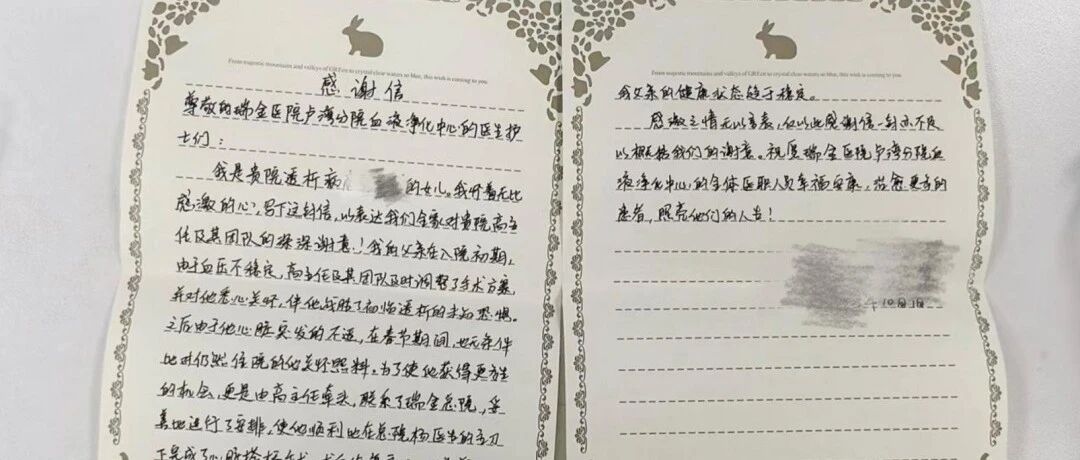 这封手写的感谢信,讲述的是一段从绝境走向新生的故事!