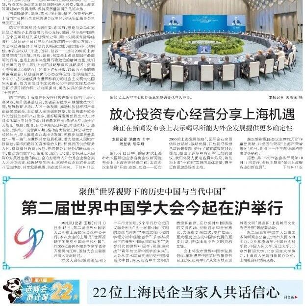 【第二届世界中国学大会】解放日报 | 聚焦“世界视野下的历史中国与当代中国” 第二届世界中国学大会今起在沪举行