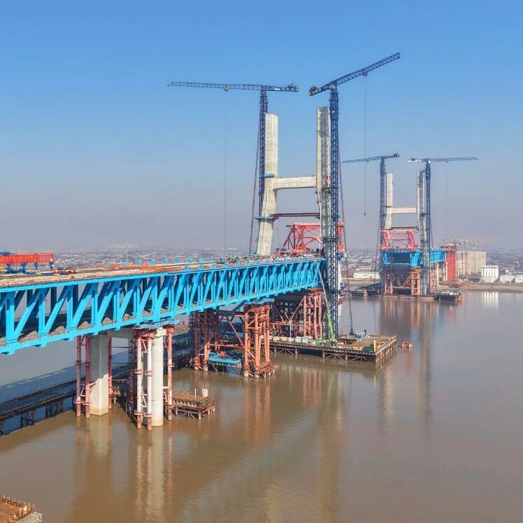 崇启公铁长江大桥主通航孔桥南侧边跨公路桥面板铺架完成