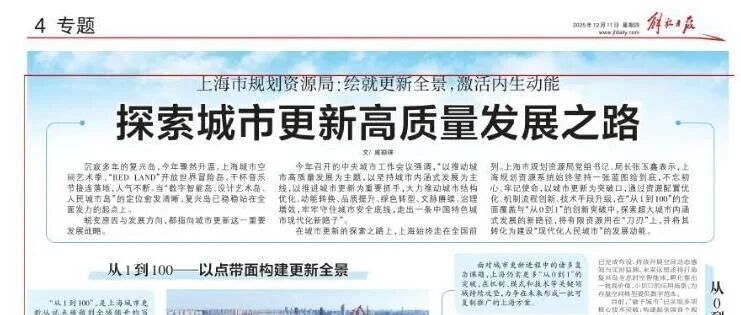 【城市更新】解放日报:探索城市更新高质量发展之路——上海市规划资源局:绘就更新全景,激活内生动能