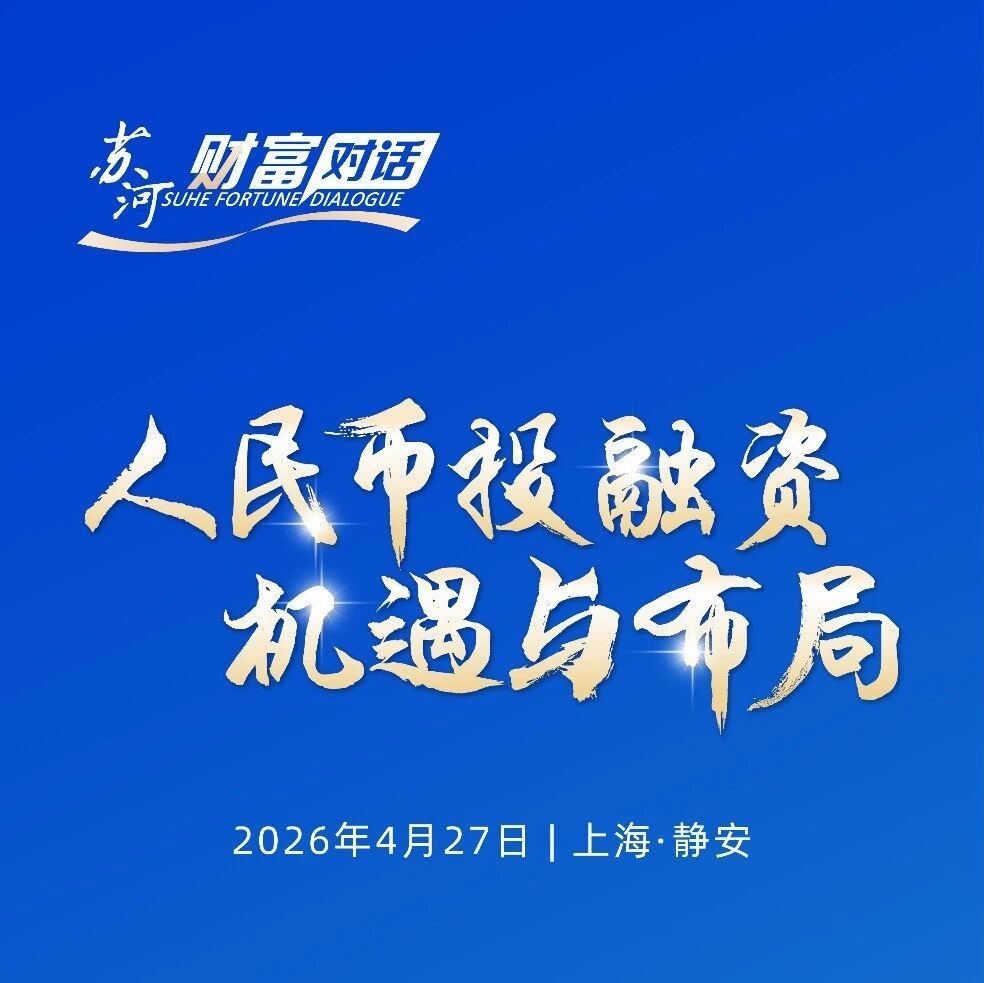聚焦“人民币投融资机遇与布局”,“苏河财富对话”第二场即将开启→