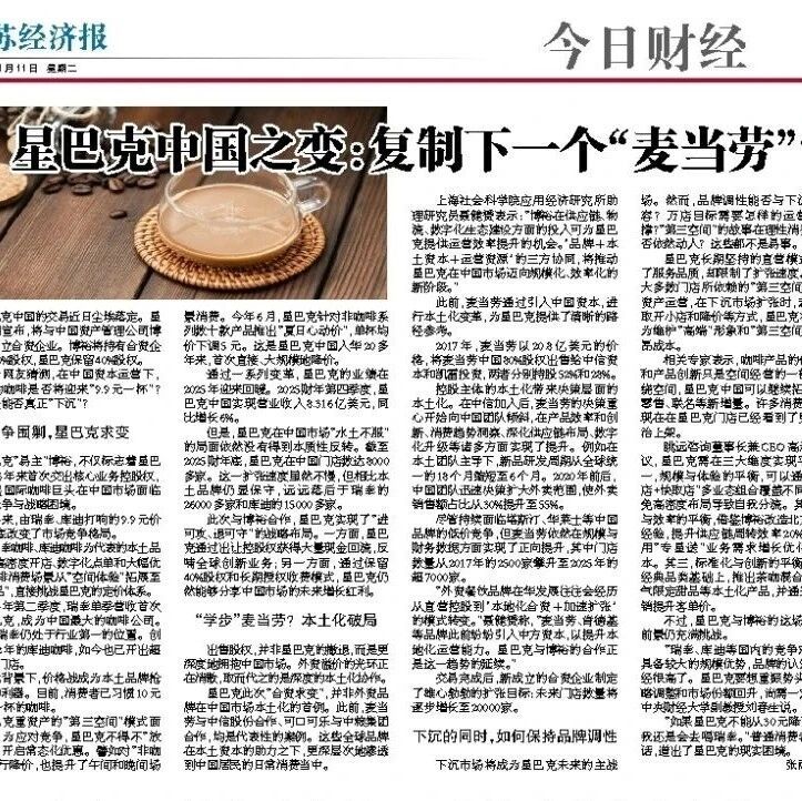 【智库声音】江苏经济报 | 聂健赟等:星巴克中国之变:复制下一个"麦当劳"?