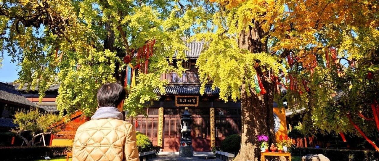“兄弟银杏”披金甲,古刹秋韵入画来