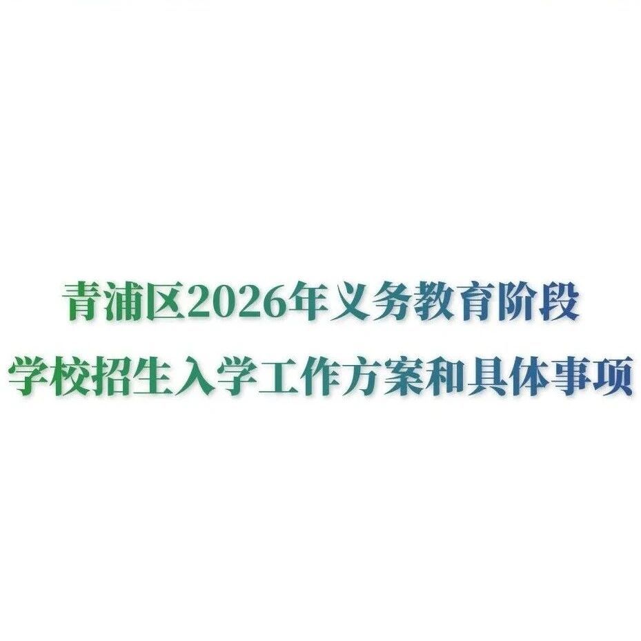 青浦区2026年义务教育阶段学校招生入学工作方案和具体事项