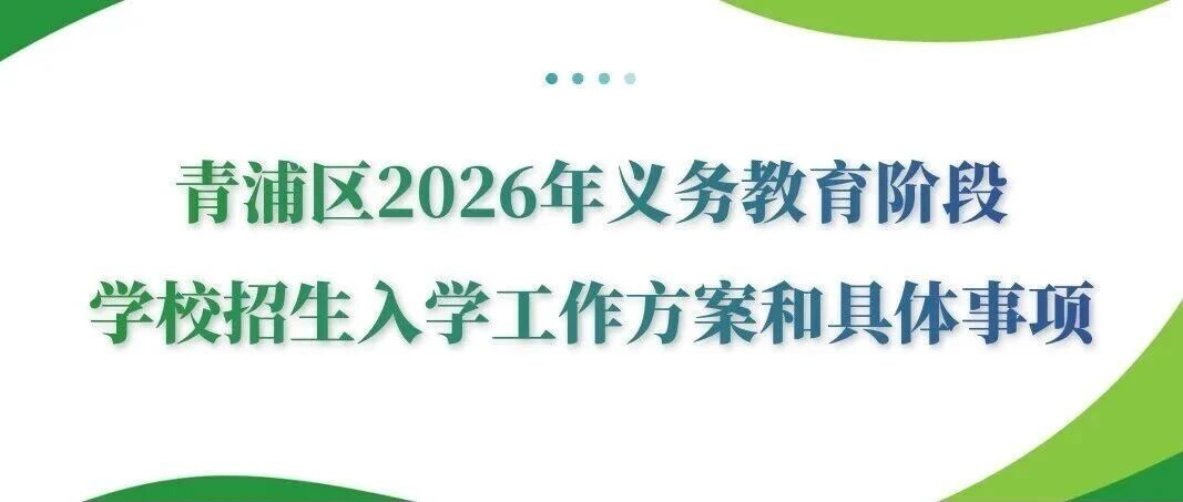 2026年青浦区义务教育阶段学校招生入学政策问答